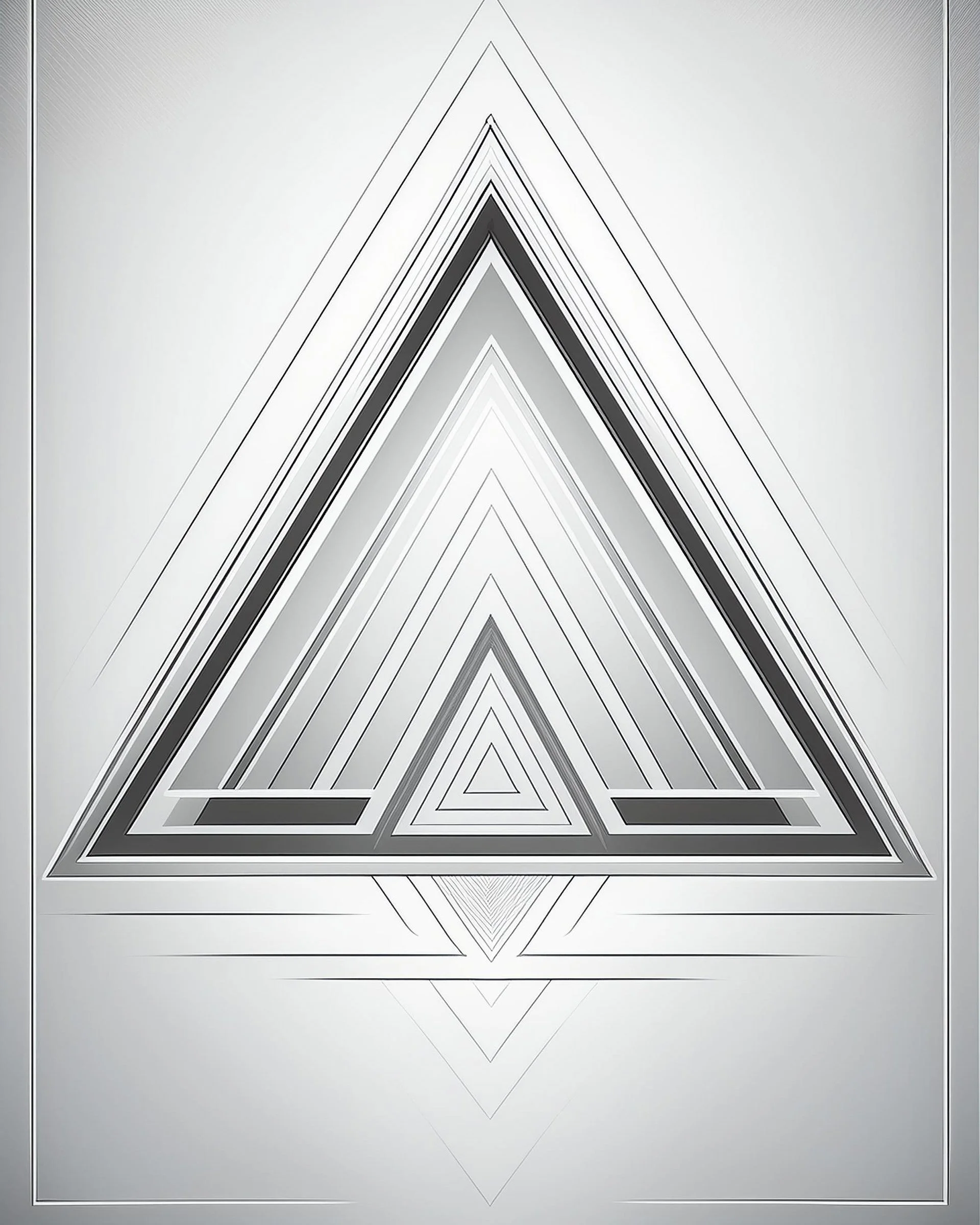 As this triangle begins its outward journey, it doesn't just grow; it multiplies and expands, each new form echoing the first. From that central point, new triangles emerge, slightly larger, slightly less intense in their blackness, creating concentric layers of form. It's as if a ripple of geometric energy is radiating from the core. Artistically, the transition from small to large isn't a mere scaling up; it's a journey of increasing complexity and subtle shifts in value. The deepest black of the central triangle gradually softens to charcoal, then to a rich grey, and eventually to a pale, ethereal shade that barely distinguishes itself from the white of the page. This gradient isn't uniform; it's a natural, almost organic progression, like the rings of a tree or the expanding ripples in a still pond.